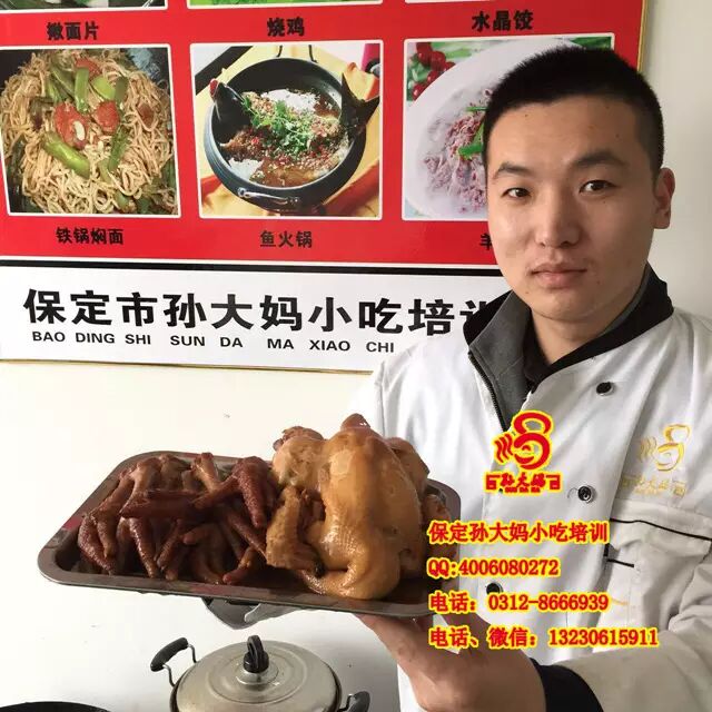 保定孙大妈小吃培训常年培训无矾酥油条,杂粮油条,重庆小面,豆腐脑,山东杂粮煎饼果子,烤面筋,烧烤,麻辣烫,锅盔,凉皮,凉面,凉拌菜,米线,拉面,板面,饸饹面,炒面,香辣面,烩面,刀削面,担担面,臊子面,手擀面,砂锅面,热干面,黄焖鸡米饭,鸡汁豆腐,钵钵鸡,凉粉,油酥烧饼,麻芝烧饼,烤炉烧饼,酱香饼,千层饼,手抓饼,掉渣饼,几十种大饼烧饼,火烧,里脊扒饼,饼卷肉,肉夹馍,馄钝,胡辣汤,鸡蛋灌饼,水煎包,蒸功夫包子,水晶饺,灌汤包,土豆粉,酸辣粉,麻辣香锅,多种火锅,啤酒鸭,红焖羊肉,火锅鸡,火锅鱼,羊汤,酥鱼,蜀王砂锅,卤煮鸡,道口烧鸡,煮下水,绝味鸭脖,炸鸡柳,炸鱼虾,甏肉干饭,重庆鸡公煲,酱大骨,荷叶饼,擀面皮,灌肠,油炸臭豆腐,多种砂锅系列等400多种小吃,学三赠四,免费住宿,材料免费,欢迎考察。学不会全额退款。电话:0312-8666939手机:13230615911QQ:2948537092 微信:13230615911 地址:保定徐水区晨阳大街高庄路口北行50米
