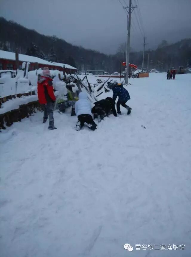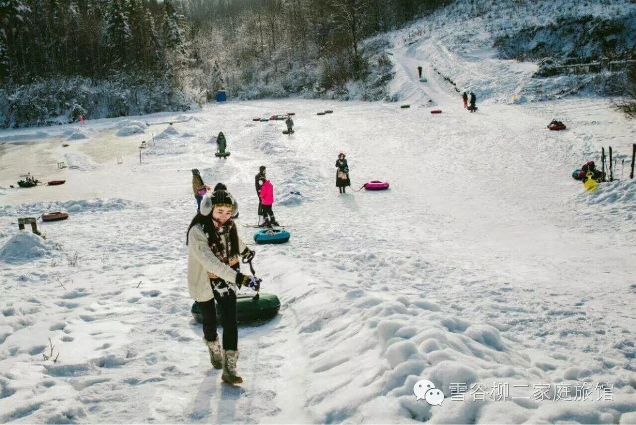 雪谷有些客栈也在自家门口建简易的小滑雪场,可以滑雪圈之类的。想要拍落日的,可以爬到村里小山上,从小山上,还可以看到黑白水墨画般的小山村。