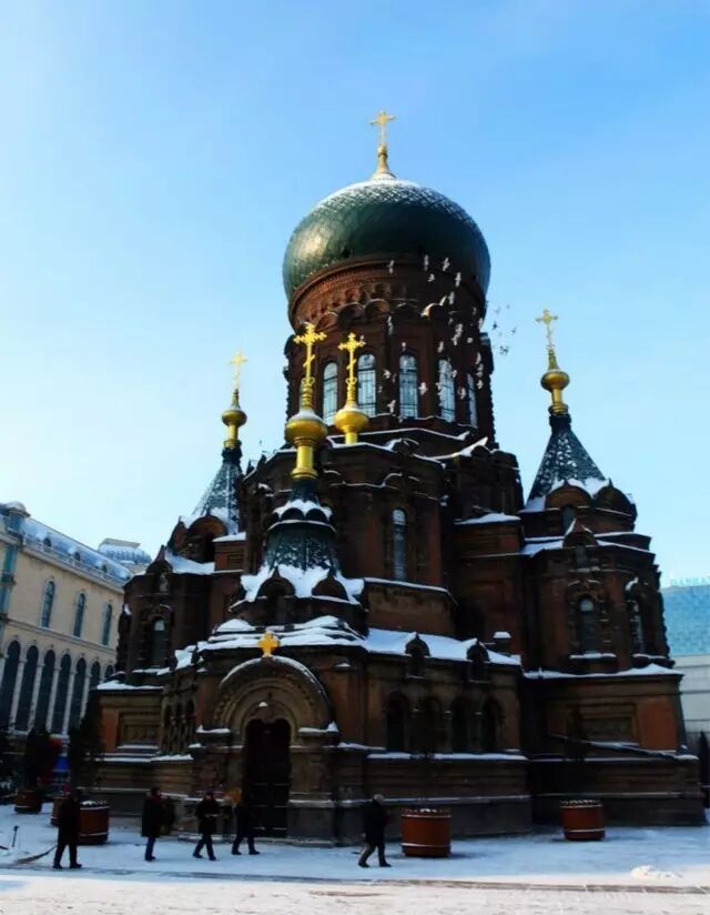 最有名的圣索菲亚大教堂就在中央大街附近,目前中国保存最完美的典型拜占庭式建筑,有着极美的洋葱头穹顶,白天和夜晚的教堂是截然不同的样子,教堂内部现为哈尔滨市建筑艺术馆,内部有壁画与浓郁的西方雕塑,展出了哈尔滨发展史上珍贵的照片。