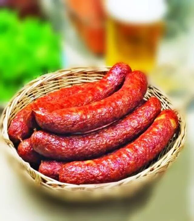 经过腌制、煮、熏等传统工艺制作而成的,正宗的哈尔滨红肠可以直接吃,吃的时候可以把肠衣(表皮)一块一起吃掉,其中以商委红肠、肉联红肠最为有名,红肠口味细腻一点儿也不肥腻,蒜味很浓,肉质较为筋道,越品愈香在秋林商场、南岗奋斗路副食商店、商委红肠都能买到。