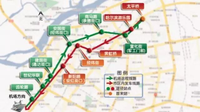 太平国际机场机场—康安路—通达街—安发桥—哈尔滨工业大学—哈尔滨火车站—民航大厦