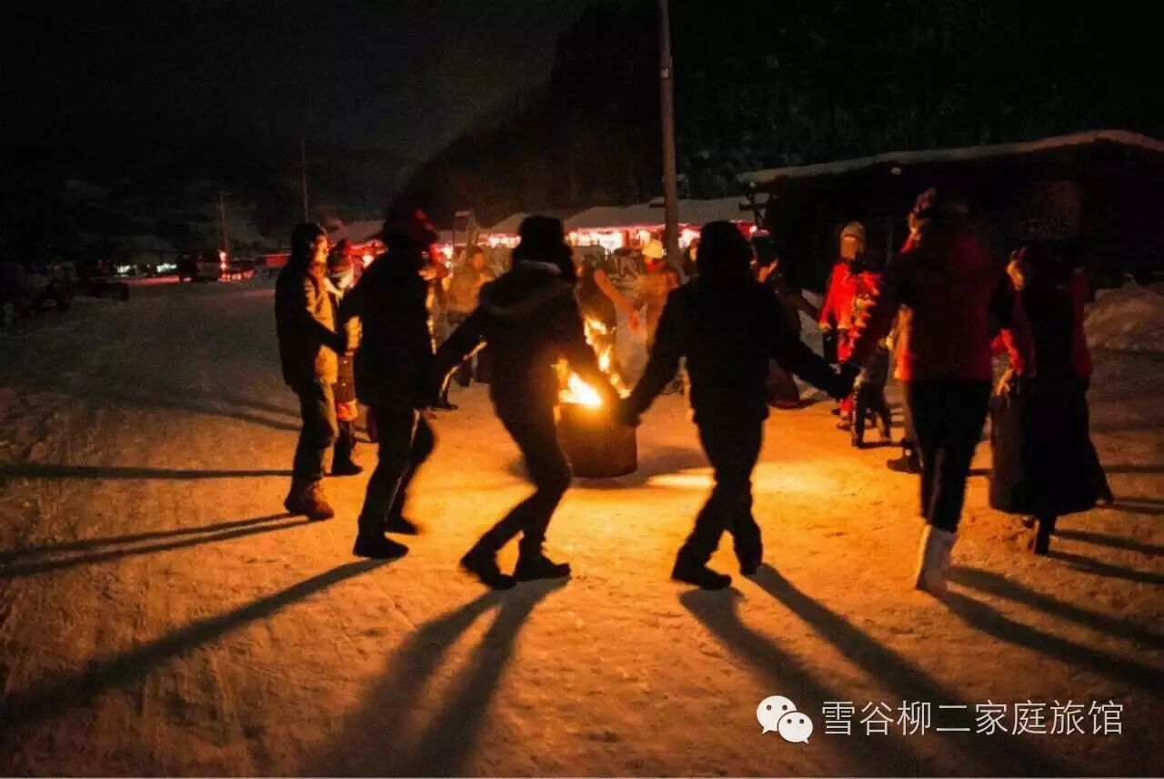 重头戏: 篝火晚会,放烟花堆雪人,打雪仗。