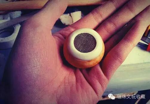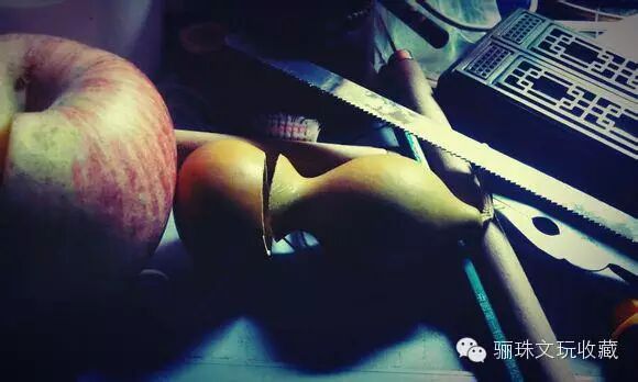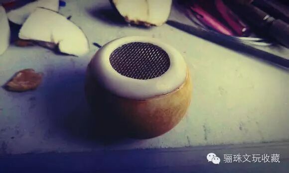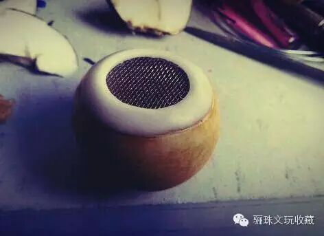 取象牙果一枚,找到于葫芦切口相同大小的面,锯出来,因为没有工具,我只能用钢锯条慢慢来