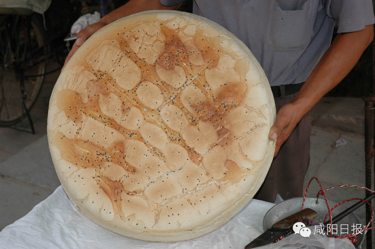 现在在陕西响当当的锅盔当属乾州锅盔了,乾县因有唐代男女二皇帝合葬陵,已是旅游热点,来这里参观的,都以品尝乾州锅盔为乐事。县城街头,常有农民做了锅盔叫卖。因水分很少,便于携带,可贮存多日,许多人用来作礼品送人。宝鸡文王锅盔也另成一家。属厚型。二十世纪初时,有七八公分厚,一个约四五市斤重。发面,硬面,不使碱。有淡的,有椒盐的,以淡的为主。酥,脆,香,甜,可以白吃,不须就菜。因为太厚,吃起来须用点力气,人们把它叫作“睁眼锅盔”,形容得睁大了眼睛吃,也是一种夸张。这样的锅盔,如今已不多见。还有一种,用油合面,加核桃、芝麻、椒盐,约二三公分厚,一般一个约一市斤,又叫“斤托锅盔”。现在的宝鸡锅盔与此略相似,又有点新创意:面粉用大油掺和,配以各种调料,斜着下刀切开,成长三角形,装袋出售。