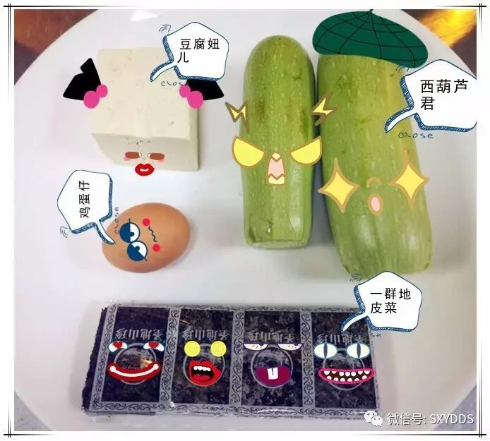 1.将西葫芦擦丝,豆腐掰成小块;地皮菜泡开,鸡蛋炸至金黄色待用;