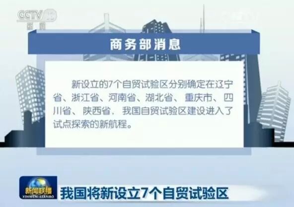 、:在辽宁省、浙江省、河南省、湖北省、重庆市、四川省、陕西省新设立7个自贸试验区。