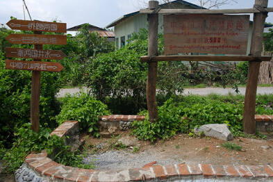 瑞丽银井寨坐落于中缅边境71号界碑旁,属于典型性“一个寨子两个国家”的地理奇观。寨中的国境线更显幽默,让人目瞪口呆,农村里最平常不过的竹棚、村道、水沟、土埂竟是界限,中国的瓜藤爬到缅甸的竹篱上去结瓜,缅甸的母鸡跑到中国居民家里生蛋便成了常有的事,边民们每月数十次地穿越神圣的国境线而浑然不觉。