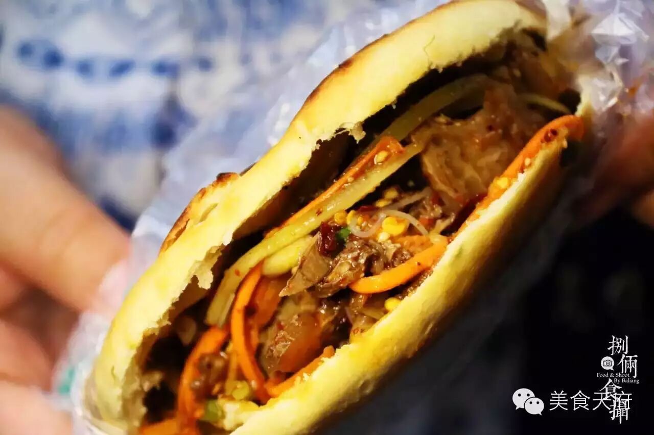 现场擀制的面皮烤的喷香,然后塞肉、塞肉、塞肉,一口咬下,面皮的焦香、牛肉的麻辣,那滋味.......![]()