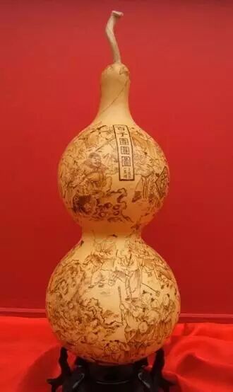 葫芦烙画艺术又称烫画,火笔画,不仅是一种汉族传统工艺美术品,而且是国家级非物质文化遗产,艺术家用烙铁在物体上熨出烙痕作画,与葫芦融为一体能永久保存、收藏,艺术价值极高。烙画具有悠久的历史和独特的艺术风格。相传起源于汉代,后失传,清朝又兴起。烙画创作在把握火候、力度的同时,注重“意在笔先、落笔成形”。烙画不仅有中国画的勾、勒、点、染、擦、白描等手法,还可以熨出丰富的层次与色调,具有较强的立体感,酷似棕色素描和石版画,因此烙画既能保持汉族传统绘画的民族风格,又可达到西洋画严谨的写实效果,因而给人以古朴典雅、回味无穷的艺术享受。