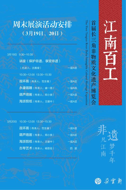 “气温上升啦,喜大普奔啦,樱花开放啦,本周“江南百工”非遗展满月啦!对于周末要来朵云轩艺术中心走一走的观众,闲话不多说,小编马上送上新鲜出炉的本周展演预告。”