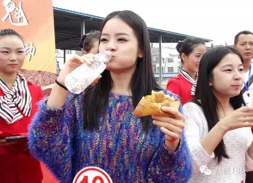 “帅锅”打锅魁,美女自然是吃锅魁。城里美女PK村花,看看谁是最能吃最会吃锅魁的“美女大胃王”的环节,最引人注目。选手轮番上阵,优雅的美女们面对美食的诱惑,也是顾不得许多了。有一口咬两个的,有咬一口喝口矿泉水的,几乎就是吃锅魁的吃相大百科。经过两轮的大比拼,最终冠军由咱们的村花吴成辉以1分56秒的好成绩夺得,并获得了400元的吃锅魁大奖。面对记者的采访,吴成辉颇有心得地说:“这军屯锅魁太好吃了,是停都停不下来的节奏呀!吃锅魁就是要豪爽,才能吃出锅魁的味道,一鼓作气,自然就能获胜。”