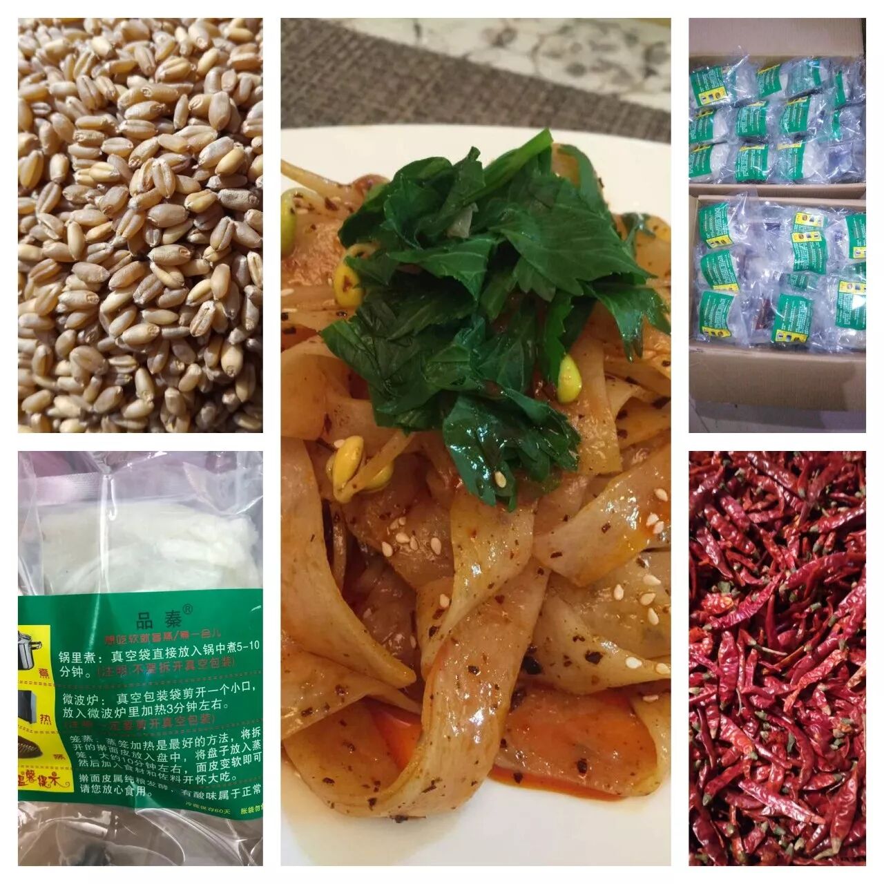 每袋包含:真空装擀面皮×1、 辣椒油包×1、调料醋包×1;