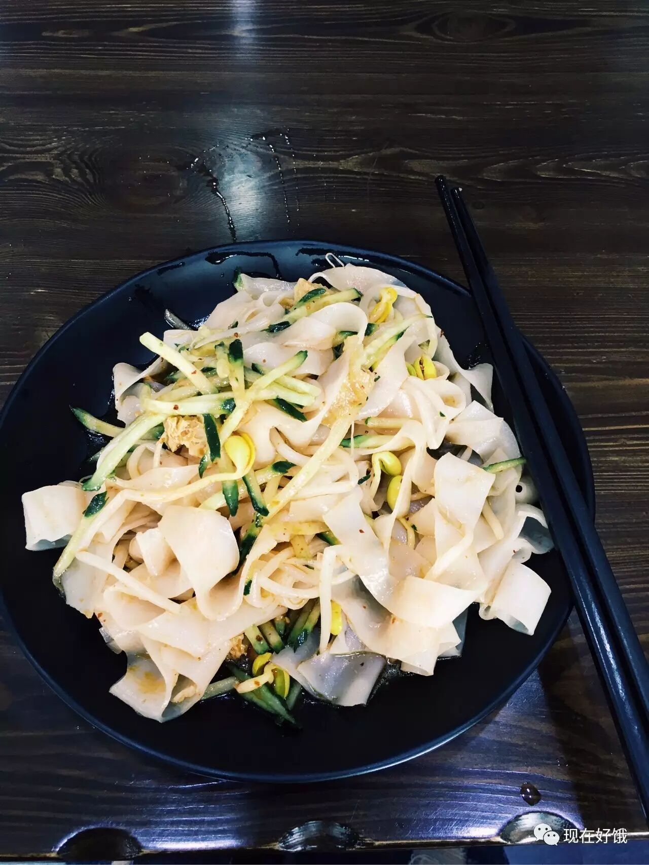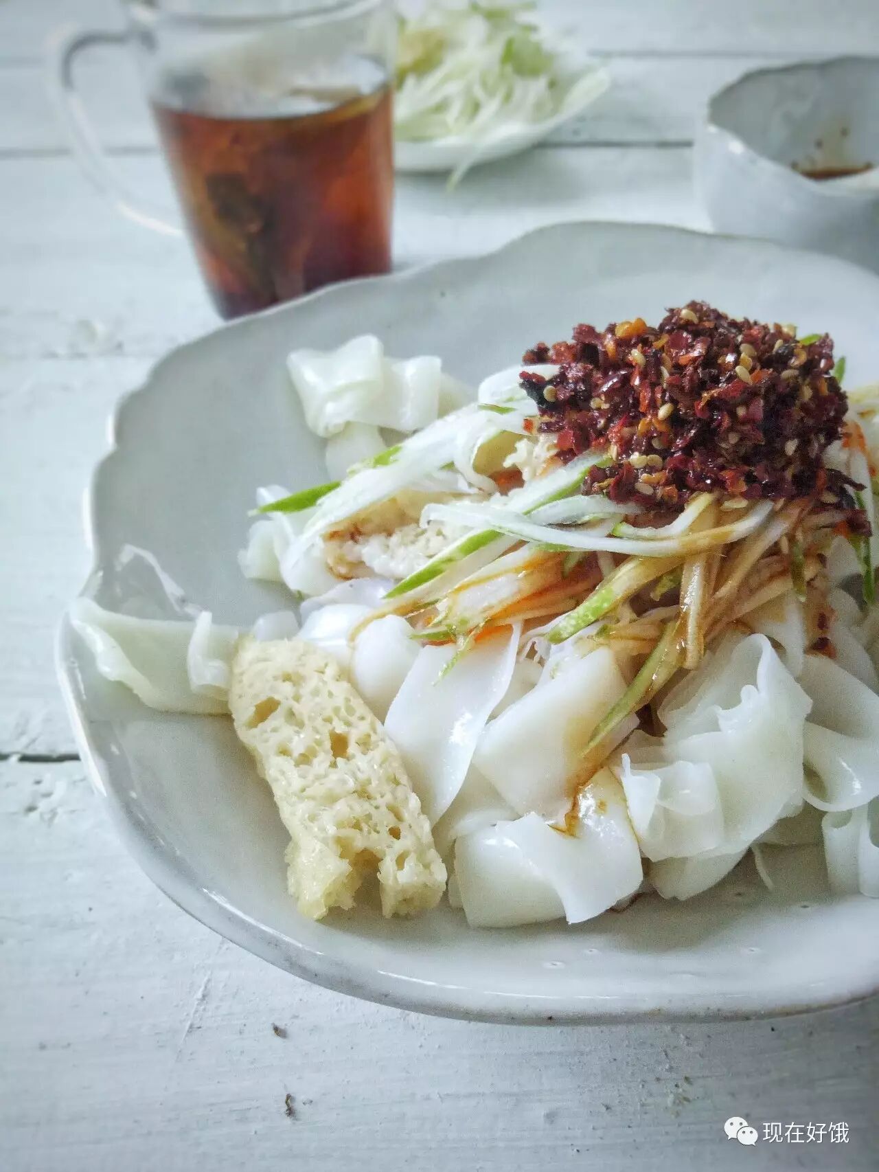 上面我说那碗凉皮肯定是关中人的手笔,因为凉皮切成了条状,带着韧性,很有嚼劲。这是典型的关中风味。而面皮就不一样了,薄薄的一层面皮,咬起来软糯,弹性和韧性基本上可以忽略,形状也是宽面一样,和凉皮有着明显的不同。吃的时候可要分清楚了。
