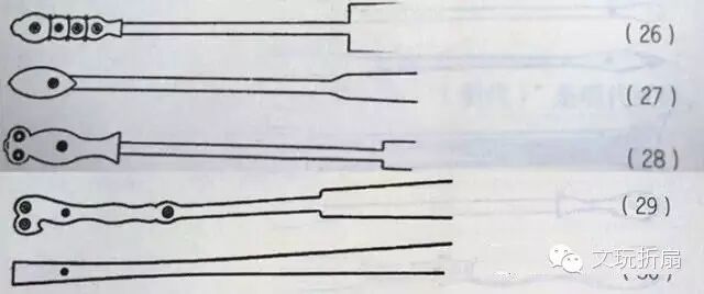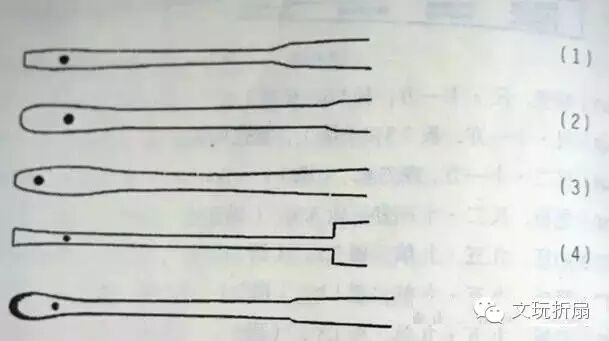 12.琴方式头(现代) 13.细葱头(现代) 14.玉兰方头(明初)现代同 15.燕尾头(明初)现代有,尾略窄。 |