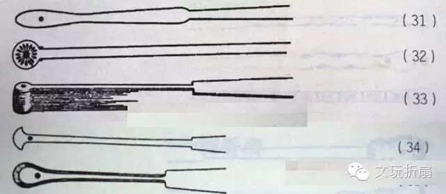31.排茄式(明初) 32.松枝圆头(现代) 33.花鼓圆头(明末) 34.小扇圆头(清初)现代同 35.开肩茄圆头(现代) |