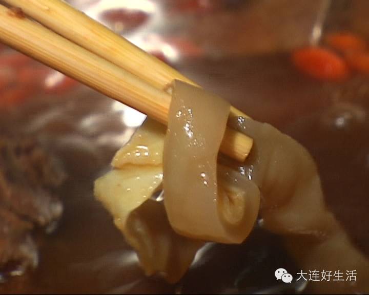 店里走上一圈,你就会发现,桌桌一屉驴肉蒸饺,再来就是这一锅咕嘟嘟冒着泡的驴肉火锅了。大连的冬天说冷不冷,但北风一刮也让人冻的直哆嗦,来上一口驴肉汤,吃上一口带皮 驴肉,这滋味从头热到脚趾头。