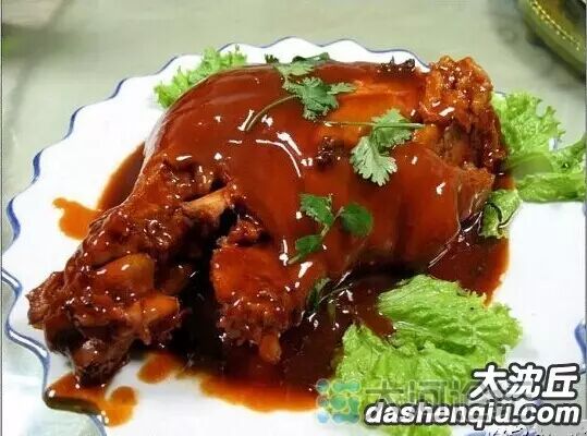 沈丘留福的特产水晶肘子其肘子:皮厚、筋多、胶质重、瘦肉多,带皮烹制,肥而不腻。该特产数年前就被沈丘县志记载,闻名当地数百里。沈丘留福水晶肘子肉瓷实、皮薄肉嫩,营养也特别丰富。辅料的选用也非常精细,产地固定。制作工艺是非常复杂的,买来的肘子要经过水泡、去毛、剔骨、焯胚、码锅、酱制、出锅、浇汁等数道工序,历时6个多小时。几十年来,凡到沈丘留福的客人都会品尝沈丘留福肘子的,而且赞不绝口。逢年过节人们争相购买水晶肘子,以便走亲串友、来客招待派上用场,去晚了就买不到。
