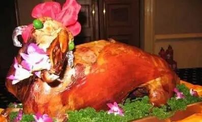 北京烤鸭被誉为“天下美味”。它以色泽红艳,肉质细嫩,味道醇厚,肥而不腻的特色驰名中外。
