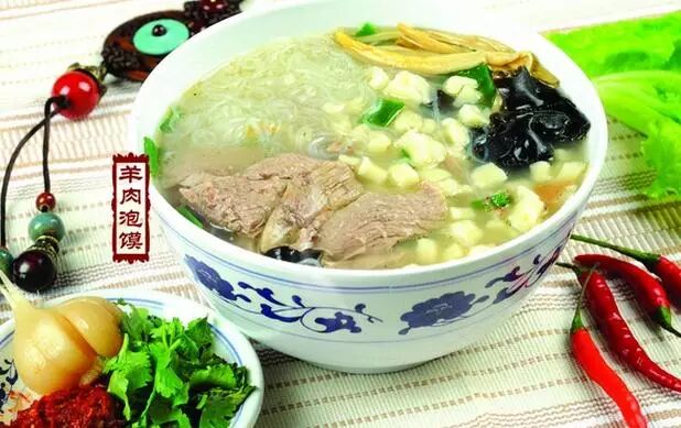 羊肉泡馍简称羊肉泡、泡馍。古称"羊羹",西北美馔,尤以陕西西安最享牛羊肉泡馍盛名,北宋著名诗人苏轼留有"陇馔有熊腊,秦烹唯羊羹"的诗句。它烹制精细,料重味醇,肉烂汤浓,肥而不腻,营养丰富,香气四溢,诱人食欲,食后回味无穷。因它暖胃耐饥,素为西安和西北地区各族人民所喜爱,外宾来陕也争先品尝,以饱口福。牛羊肉泡馍已成为陕西名食的“总代表”。它烹制精细,料重味醇,肉烂汤浓,营养丰富,香气四溢,诱人食欲,食后回味无穷。