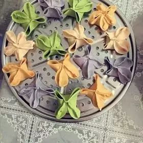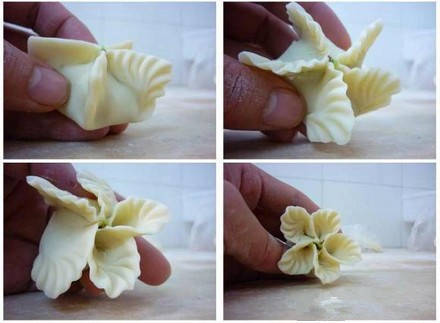 把圆皮均分5点,粘在一起形成5条边,把口捏紧