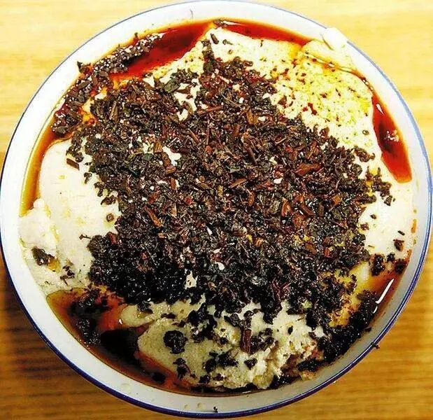 用锅内热滚滚的浆水连过几遍,使馍块透热,再在其上舀上比豆腐脑略硬、略粗些的豆腐花,浇上新鲜或腌制的香椿末和特制的辣椒油,一碗热气腾腾、油香滑嫩的豆腐泡就端到了客人面前。