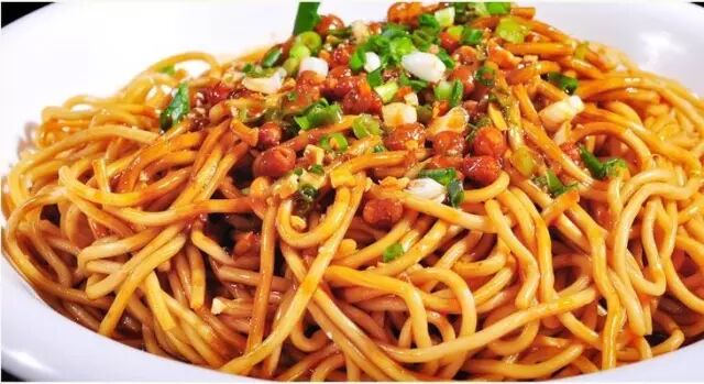 其做法类似北方的“干拌”,不浇汤汁,取而代之的是“将煮好的面条放在锅里小煮,捞起后甩干,撒上红红绿绿的各色调料和葱花,最后浇上滚烫的清油,滋滋冒响,松散红亮、香味扑鼻……”宜宾人一早起来,有吃面的习惯,最常吃的就是汤燃面,、辣、鲜、香川味十足。