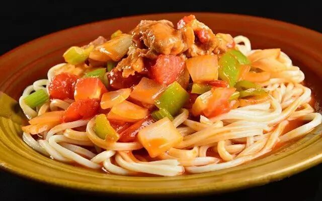 新疆的拉条子餐馆大部分是回族同胞开的,也有个别是维吾尔、哈萨克同胞开的,他们可以说是把这种普通的菜肴做到了极致,其配菜几乎涵盖了所有市场能见到的蔬菜。
