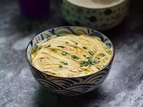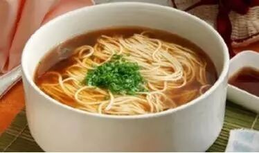 阳春面英文译名Plain Noodles ,又称光面、清汤面或“清汤光面”,汤清味鲜,清淡爽口。