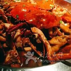 这家店是小桂身边许多同学的强力推荐。其中招牌肉蟹煲深受食客赞赏。鲜嫩可口的蟹肉配上浓郁酱汁深深勾起味觉,香软糯口的鸡爪做底,蟹肉与鸡爪两种肉质的中和吃起来不会太腻也不至寡淡。除了蟹肉煲,这家店还有牛蛙煲、鸡翅煲、鸡爪煲等等可供选择。