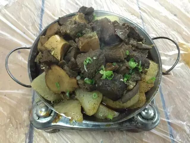 桂萍特色牛筋牛杂上面是牛杂,下面用萝卜打底。牛杂软烂不散,萝卜个头虽大,但非常入味。虽然涨价趋势很猛,但还是对得起分量。