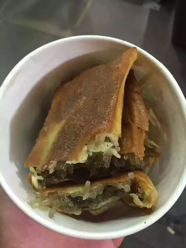 胡家豆丝饼改良于黄陂豆丝,吃起来外皮焦脆,内馅鲜美。在武汉众多小吃中独树一帜。
