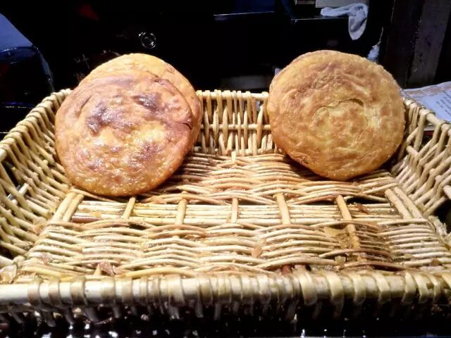 徐记油酥饼是先用油把饼煎的金黄,再把锅移走,放在下面的炉子里烘烤,本来略油的饼,这样烘烤一下,油分就挥发的差不多了。鲜肉馅的不辣,牛肉馅的偏辣,两种都好吃。馅料扎实,分量十足。经常有人八个十个的买,后面的人只好干瞪着眼,等着下一锅,并祈祷在自己前面排队的高抬贵手。