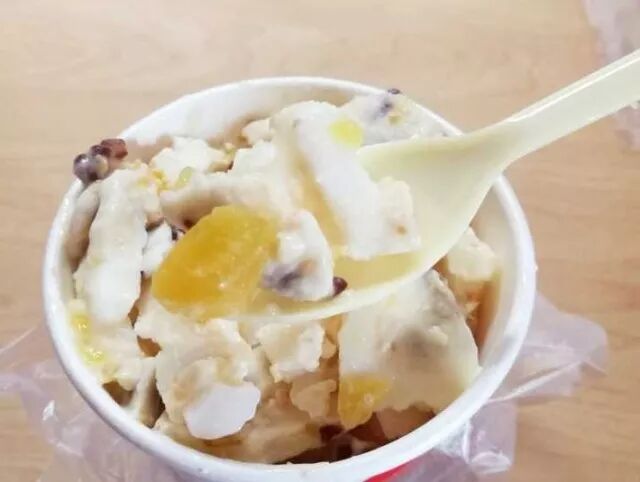 菠萝、芒果、蓝莓味的炒酸奶,每次看完电影必吃,被某些大四同学誉为"天堂炒酸奶"。小编推荐芒果味的炒酸奶,酸酸甜甜的酸奶配上坚果和红豆,口感清爽奇妙~