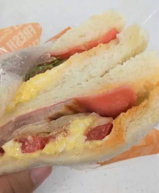 三明治的面包很软,加上烟熏火腿就是绝配,下课饿了的时候来个加热后的三明治简直完美!