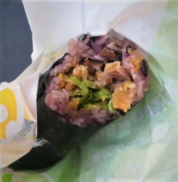 力荐紫米饭团,脆脆的肉松,不是一般的那种肉松,料足,有青菜、卤蛋、火腿等等等等。小编推荐海苔牛排、招牌饭团、爆浆芝士等等……。它家有外卖哦,懒惰的小伙伴们也可以在寝室长胖啦!