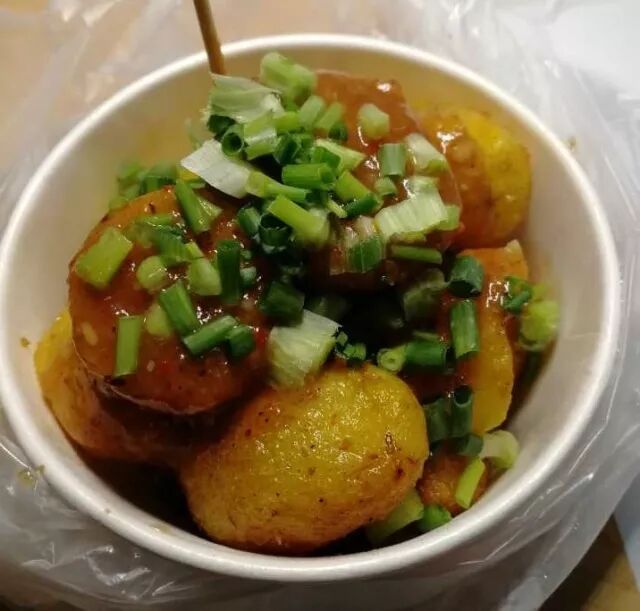 就在康康快印旁边,五块钱一碗满满的小土豆。外焦里嫩,咬下去满满的幸福感。自从我发现了这家店,每天下晚课就腿会自动走向那里。还有煎饺和豆腐,都超级值得一试~