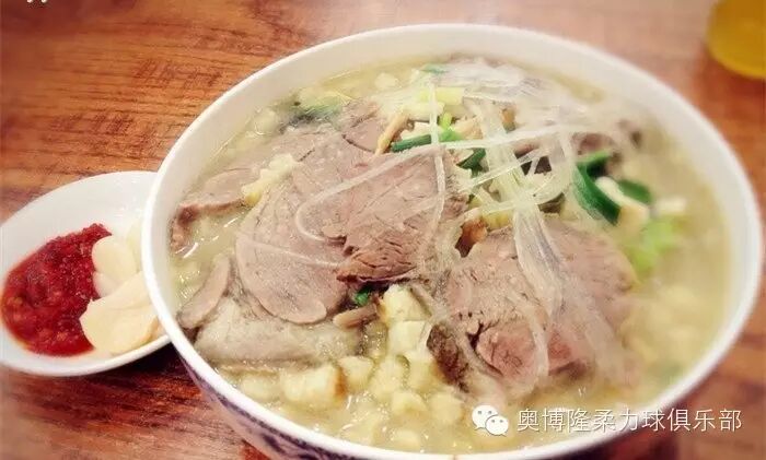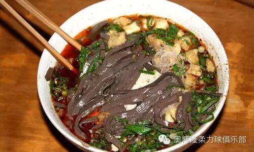 粉汤羊血是陕西地区汉族传统名吃之一,由制血、配调料和泡馍三个步骤精制而成。原先是民间食品,后来由生意人引进市场,是深受当地老板姓喜爱的小吃之一。吃粉汤羊血,可以要了汤自己拿饼泡着吃,也可以掰成铜钱大小,交给大师傅来泡。粉汤羊血讲究“麻、辣、咸、香、光、嫩”。羊血鲜嫩爽滑,没有丝毫腥味,辣椒油让整个碗都是通红的,吃得嘴角发麻、满头大汗,感觉很是舒服。