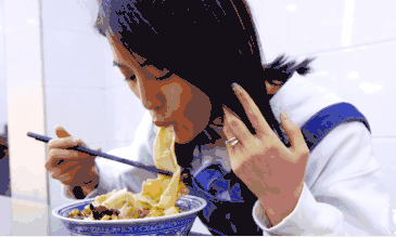 洁白如玉的面条,配上绿色的小青菜、西红柿鸡蛋臊子、牛肉、土豆、木耳等,撒上鲜红的秦椒面和碧绿的小葱,热油一泼,喷香扑鼻。那叫一个“忒色”!让人吃得“馋火”,有道是:“油泼辣子biangbiang面,越吃越美赛神仙”。