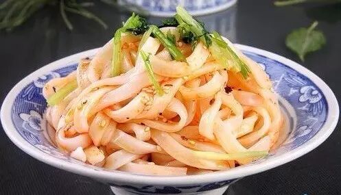 西安凉皮是陕西著名小吃,在西安无论是高级餐厅还是街头小贩都能看到凉皮的身影!西安街上的凉皮,米皮白且透亮,蒸笼有多大就能蒸出多大一张,蒸好后一张与一张之间略抹熟菜油,然后一层层摞起来,堆在案头如同招牌一般。吃的时候小贩会直接将米皮切成筷子般粗细,然后放上盐、醋、特制的调料水、配上豆芽等小菜,最后用勺子挖一大勺辣椒出来,红红的,油油的,一起淋到皮子上。这样的凉皮咬一口滋滋冒油,那种香辣透心、鲜美爽口的感觉实在过瘾!