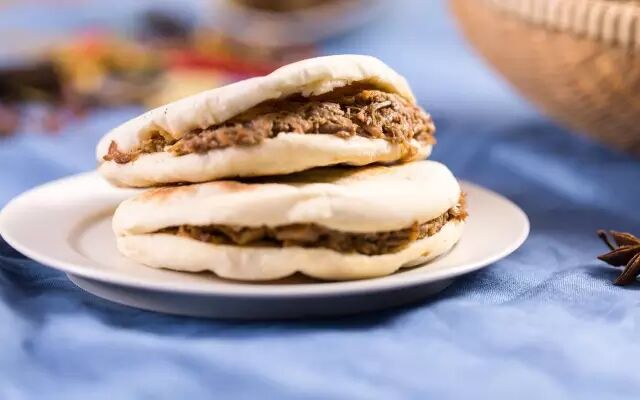肉夹馍是陕西的著名小吃,不仅味道好,而且一个就能吃到饱。肉是用腊汁肉,极为酥烂,滋味鲜长,肥肉不腻口,瘦肉不柴不油。汤汁用熬制的老汤。馍必须是特制白吉馍才正宗,这种馍口感极酥,味道绵香。要是在刚出炉的白吉馍中夹入少量的腊汁肉,绝对是馍香肉酥,回味无穷啊!