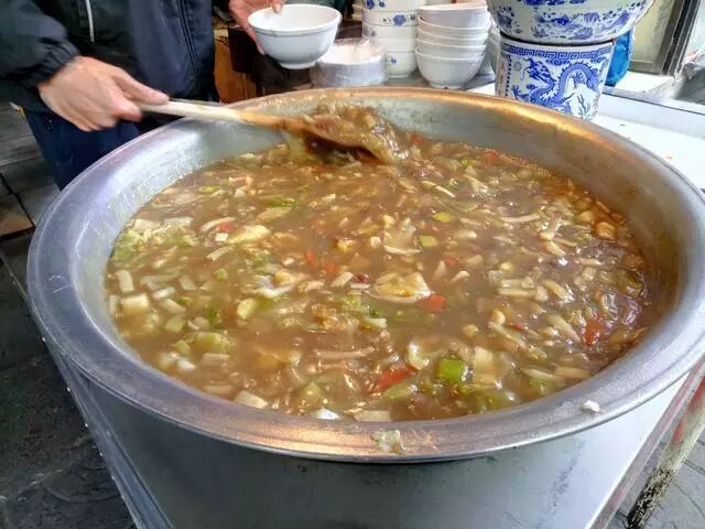 第三天了还没吃羊肉泡馍,所以一大早就来吃老孙家的羊肉泡馍,以牛羊肉汤和煮好的肉与掰碎的饦饦馍烹制而成。其实最有意思的地方是馍你自己慢慢的掰,我足足掰了40分钟,黄豆大小,累屎我了。虽然有点不习惯的,吃过后我感觉还不错,就是有点油腻,吃完后肚子很满足,午餐省了。
