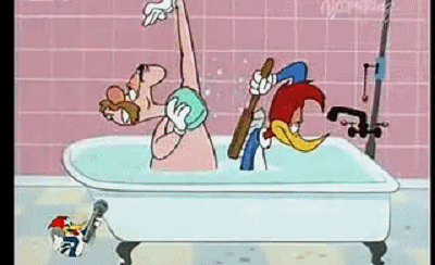 在浴缸里拔掉塞子,用木板作冲浪板游泳