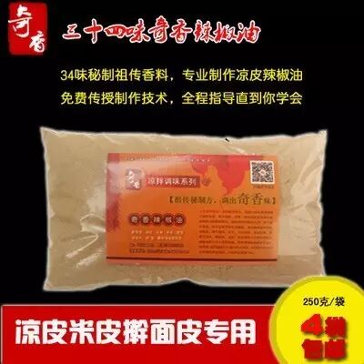 34味奇香辣椒油是我家祖传的秘方,该辣椒油广泛应用于凉皮 擀面皮、凉粉、凉菜、拌面等。现在全国有500多家小吃店在用我的的辣椒油,用了以后生意格外好,回头客增加很多,对这个味道的辣椒油赞不绝口,在市场上具有很强的竞争力。通过阅读本文,你只需用我的祖传香料按照我的做法完全可以做出和我一样的辣椒油。