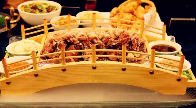 宁夏烤全羊,出炉后的羊羔肉外焦里嫩、细嫩鲜美,味鲜而不腻,肉嫩而不腥膻,是招待外宾和贵客的传统名肴。