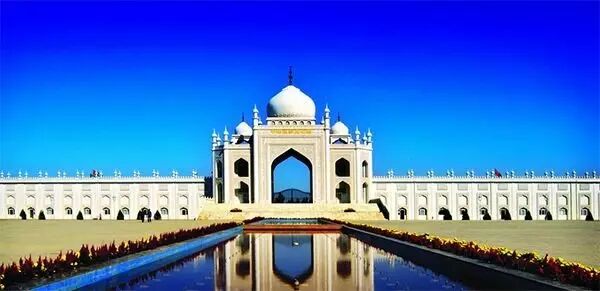 中华回乡文化园,顾名思义,是以回族文化风情为主题的景区,建筑很有特色,尤其是类似眼泪的白色圆顶,被誉为中国的“泰姬陵”!