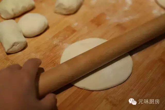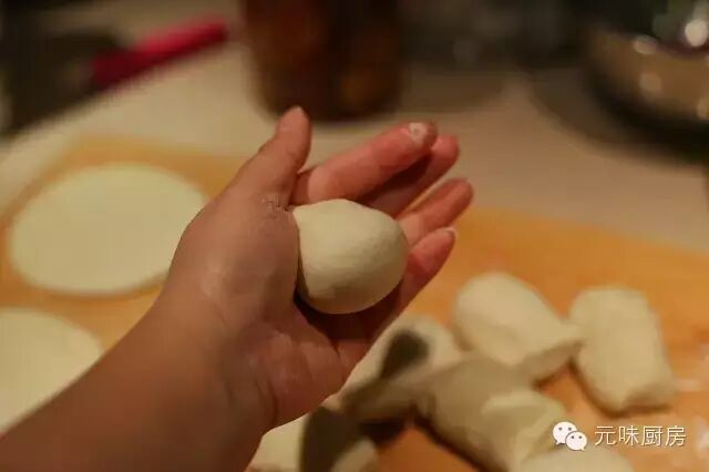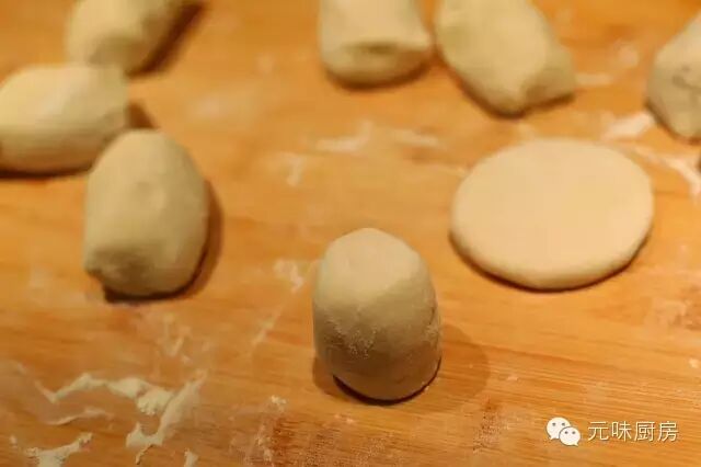 9. 如果是打算直接吃或者就羊肉汤吃的,饼中间不用空心,则将小面团顺着一个方向使光面始终向外,裹起来。这个手法我有点说不清,我是在锅盔摊边守着看来的。