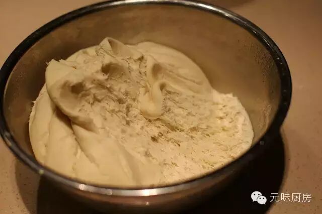 3. 面团回温后准备做锅盔了,这时掀开面团看组织是这样滴。
