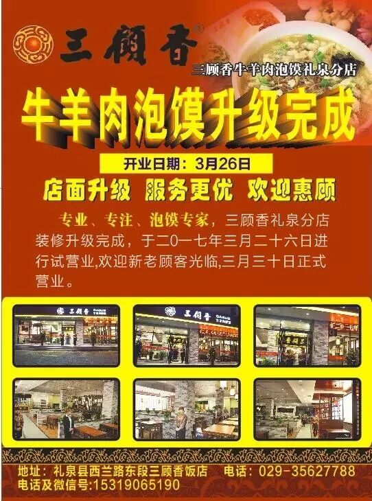 地址:礼泉县西兰路东段三顾香饭店 电话:029-35627788