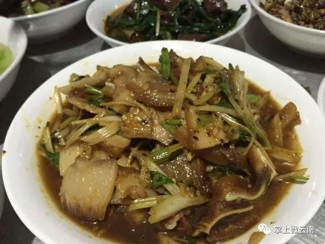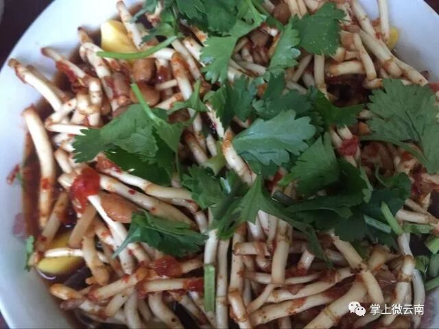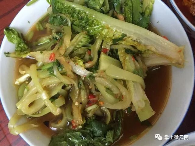 这一道菜或许在一些地方吃不到,很多云南人酷爱的凉拌折耳根,有时候还会在烤饵块上弄上一点点,折耳根又叫鱼腥草、狗心草、狗点耳。有特异气味,细细咀嚼,越嚼越香,不禁会使人食欲大增,所以不失为别具情趣的佳肴,无论在餐厅还是日常都可以看到它的影子。这道菜的做法也不太难,喜欢的小伙伴们可以学习一下,将新鲜折耳根摘去老根,用清水洗净,如果根部较长,将其切成长短合适的段。将洗净沥干水分的折耳根放在一个大盆内,将所有调料按自己口味放入,拌匀即可。