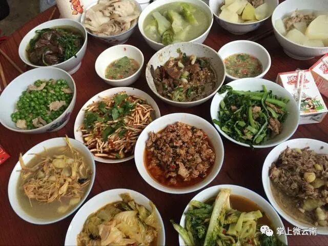 在云南当地主人家的热情与好客还表现在,当一桌的菜其中有一碗快见底的时候,主人家会马上添上满满一碗,这也可以让吃货们饱餐一顿。主人家在席中会给男子们发烟,给到来的客人们斟酒,农家自己酿的酒也是非常可口的。除了以上介绍的这些菜,还有很多,在这里就不一一介绍了,相信你们家乡的美味也是非常可口的,小伙伴们可以留言一起分享你们家乡的杀猪饭的佳肴。
